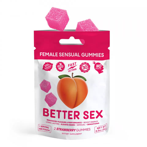Get the sweet, juicy, elevated desire and arousal that’s been missing from your relationship. With two strawberry gummies, you’ll feel pure pleasure and ecstasy and look at your partner in a new light. What’s the secret? Better Sex works super fast, so you don’t have to. In under 30 minutes, you’ll feel the fire and passion that’s been missing for the past few years. You’ll be so excited that you won’t be able to keep your hands off your partner. But slow down there, tiger, because nobody likes an overachiever. Better Sex Female Sensual Gummies will get you there, but make sure your partner can keep up! With Better Sex Female Sensual Gummies, you’ll feel more desire and pleasure and have more fun than you’ve had in years. There are no headaches, no side effects, and no after-effects either. Just pure pleasure and joy in the bedroom (or whatever room you prefer).