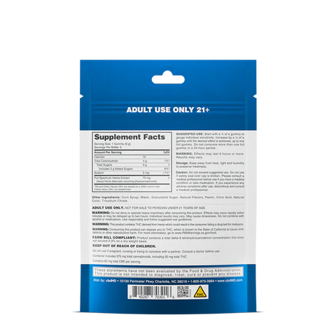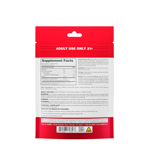 Using these gummies just might be the tastiest way to get the full benefits of THC and CBD together. With flavors like cherry and blue razz, you will be reaching for these every day. Just like with any CBD or THC products, it's important to start slow and allow your body to adjust. We recommend starting out with the suggested serving size which is a quarter of a gummy. After a few weeks you can up your intake to achieve your desired effect. However, do not take more than one gummy in a 24-hour period.