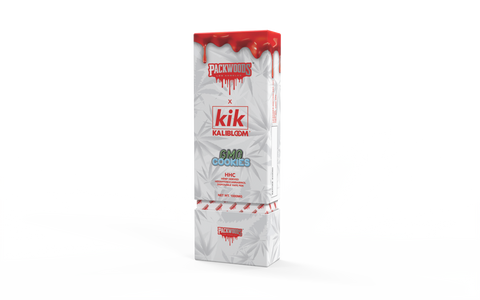 The collab you've been waiting for. Kalibloom x Packwoods Kik contains 1g of HHC in a discreet disposable device that hits smooth and can be recharged if necessary. Available in six delicious and potent strains. Contains no VG, PG, MCT, or Vitamin E.
