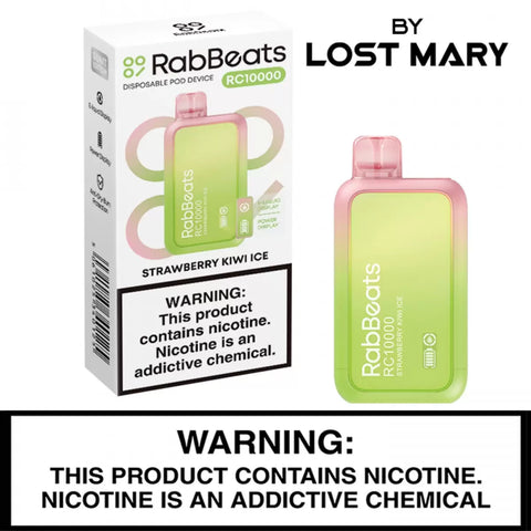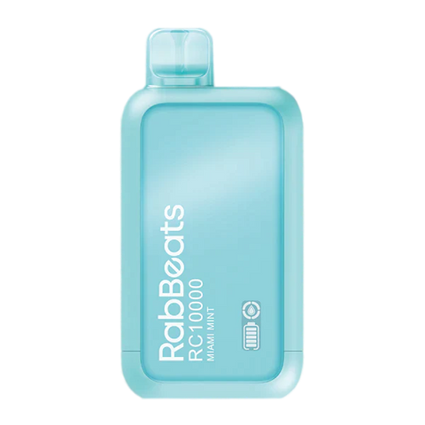 The RabBeats RC10000 is a high-performance disposable vaping device with a long-lasting battery, a huge e-liquid capacity, and mesh coil technology for enhanced flavor. E-liquid levels and battery life are displayed on an LCD panel.